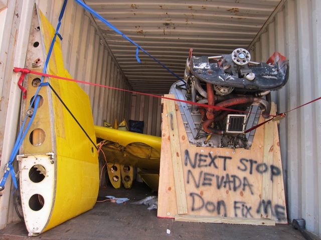 The main point of the story is to share the images of getting her from the airport to the commercial dock and into a container. She is headed back to the states to Don Bartholomew's shop to be completely rebuilt. Its going to take a lot of work and resources, but Don is the man for the job and 51K will be back in the air better than ever, with a new canopy from the Aeroplane Factory.