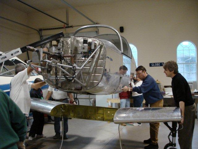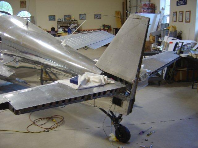 At the end of the first installment (read Part 1 here), all major repairs were done and the underside of the fuselage, center section, wings, and horizontal stabilizer were painted. During the last week of December 2006, the fuselage and center section were finally mated. After eight years, Swift N3876K finally stood on its own gear.