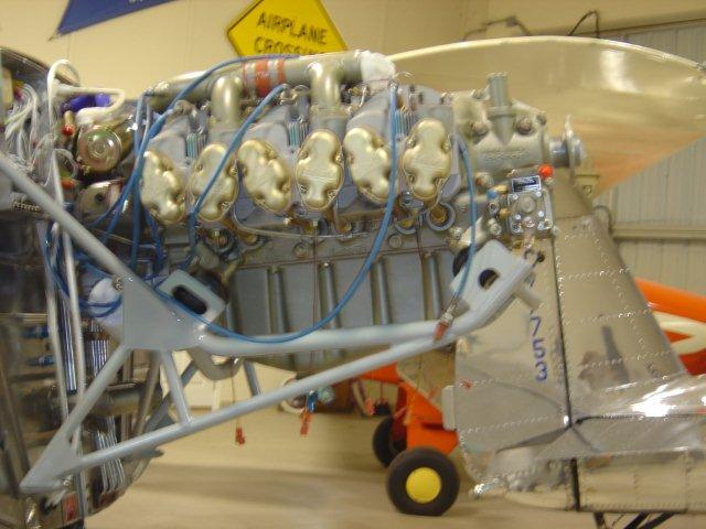 The next project was to hang the engine. Maybe we should stop here and state that we purchased Swift serial number 2066, which had been involved in an accident so as to obtain the many STC'd alterations on that airplane. As a result, some of those STC'd alterations were converted to the project airplane. At first we tried a Jack Nagle engine mount. Two problems were evident; the engine hung too low, and there was not enough room for the vacuum pump to clear the firewall. We removed the engine and mount, made spacers to extend the mount enough that the vacuum pump would clear. Still, the engine sat too low for the stock cowling to fit and look right. This was not going to work! We took the engine off again, and acquired a Charlie Cummins' mount. The third time was the charm! The engine and mount worked great with the stock cowling. There is room to remove the alternator, and possibly the vacuum pump without removing the mount. A surplus 12 volt motor originally used as a snowmobile starter motor (obtained from Jim Montague), was used to replace the original motor on hydraulic power pack, via an FAA Field Approval.