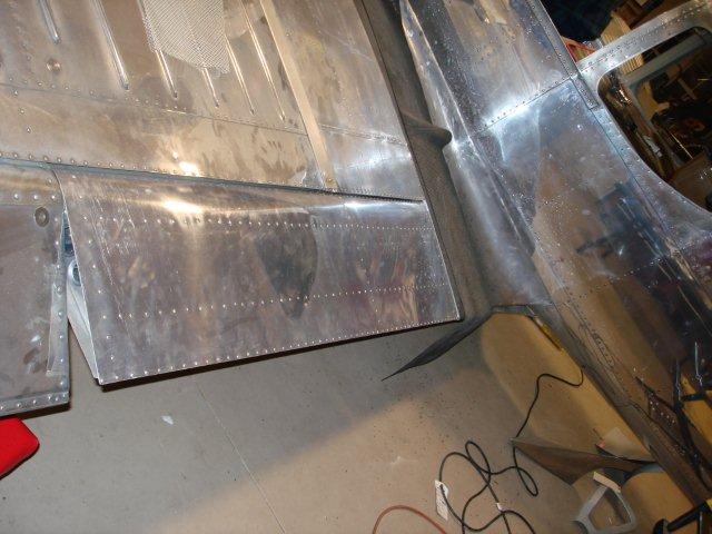 We had to re-skin the left flap, which rounded out our final repair needing an FAA Form 337. Replaced the side and sliding window glass with countersunk screws.