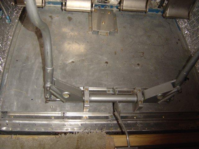 We replaced all the control cables with stainless steel, and repaired or replaced all the pulleys. Many small projects were going simultaneously. The battery relocation shelf and an equipment shelf were made and installed behind the baggage compartment. A Whelen three strobe system was added with the power supply mounted on the side of the relocated rear battery shelf, along with the ELT, and battery contactor. The floor piece to fit over the sticks was cut, bent, and fit. The wiring from the fuselage and center section was connected.
